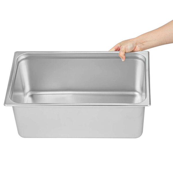 Diseñada para el uso intensivo en cocinas comerciales, estaciones de buffet o unidades de preparación, esta cuba gastronorm ofrece una solución duradera, práctica y visualmente atractiva para el almacenamiento y servicio de alimentos.